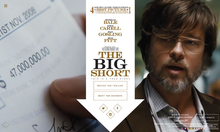 在上面 The Big Short movie 的網(wǎng)站中,為用戶提供了大量的信息。視頻剪輯足以使你對電影感興趣,并且有一個按鈕來觀看預(yù)告片。你對這個真實(shí)的故事感興趣嗎?同時,頁面上還具備一個按鈕來于專家會面。你有沒有看過它,想分享你的想法?這有社交媒體按鈕可以馬上幫你做到這一點(diǎn)。從一開始就有很多方法與網(wǎng)站進(jìn)行互動。