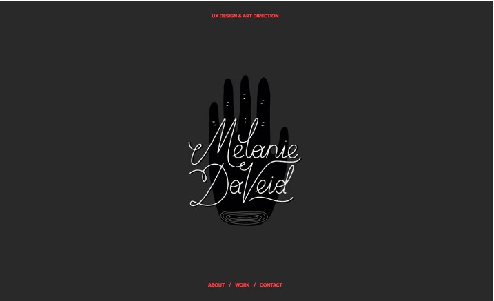 Melanie DaVeid 做了一個優(yōu)秀的示范,通過一個簡單的視覺呈現(xiàn),使你對它的其他工作感興趣。通過動畫,顏色和特殊的文字組合,在首屏就為用戶創(chuàng)造了獨(dú)特的感覺。