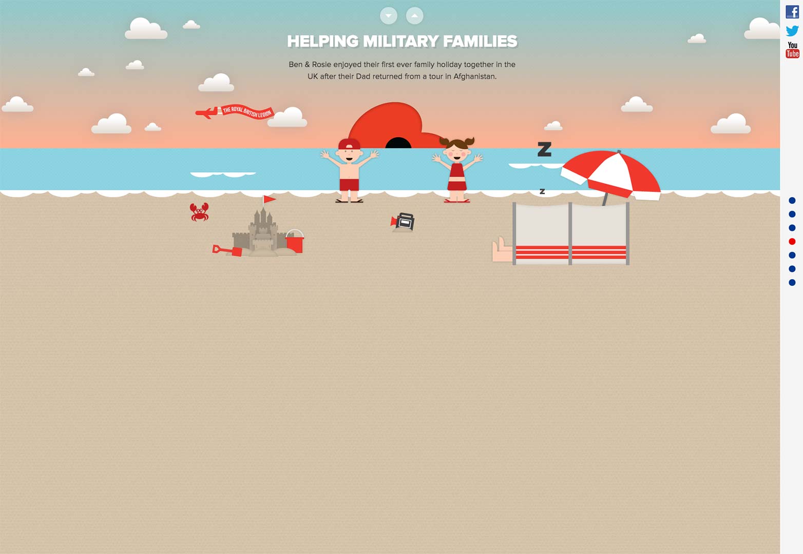 以The Royal British Legion為例,這個(gè)網(wǎng)站就是通過(guò)視差滾動(dòng)的方式想你展示了捐助是如何全程使用過(guò)來(lái)的必要信息。當(dāng)你向下滾動(dòng)的時(shí)候,這些充滿活力的故事就通過(guò)視差特效一一展現(xiàn)在你的眼前,你會(huì)看到軍團(tuán)為退伍老兵所提供的各種各樣有益的服務(wù)。
