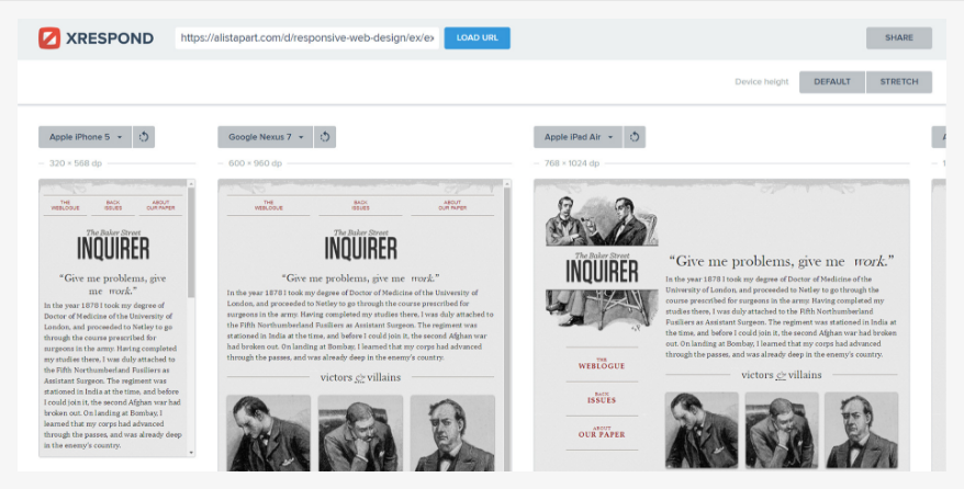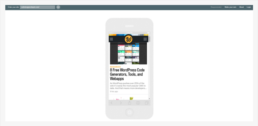 和XRespond的功能相似,Responsinator也提供了不同屏幕尺寸下的預(yù)覽效果。不過,Responsinator的布局和前者不同,縱向滾動(dòng)更符合日常的交互邏輯。