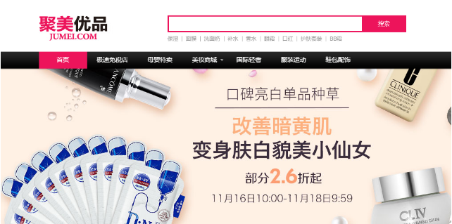 如聚美優(yōu)品的網(wǎng)站,首先符合互聯(lián)網(wǎng)電商網(wǎng)站的風(fēng)格,讓用戶一眼明白它的電商屬性。其次品牌名出現(xiàn)在最醒目的位置,且用紅黑兩種顏色組成,也突出了品牌。