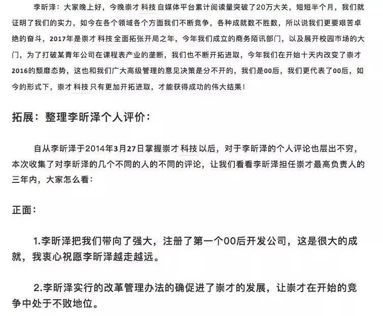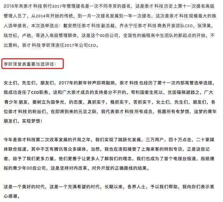 如果從產(chǎn)品、業(yè)務的角度來衡量崇才科技還不算一家成功的公司話,從品牌、公關的角度來看,李昕澤這么小的年紀,能做到如此境界,已經(jīng)秒殺了不少公關公司。