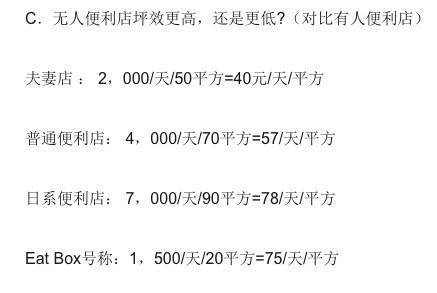 就坪效來看,無人便利店并沒有優(yōu)于諸如7-11之類的日系便利店,而目前20萬一個的便利店盒子(20平大小)的投入成本也遠遠高出了一家90平的普通便利店。雖然無人便利店在資金、人力成本方面確實能占據(jù)些優(yōu)勢,但即使是4個人能維運40家店,或者按另一說法,2個人能維持7家店的運營,其硬件上的巨大投入,從很大程度上幾乎毫不費力地能夠覆蓋掉費心費力想要剩下來的租金、人力成本,從提升效率上來看,較于7-11等連鎖便利店也并沒有明顯的改善。