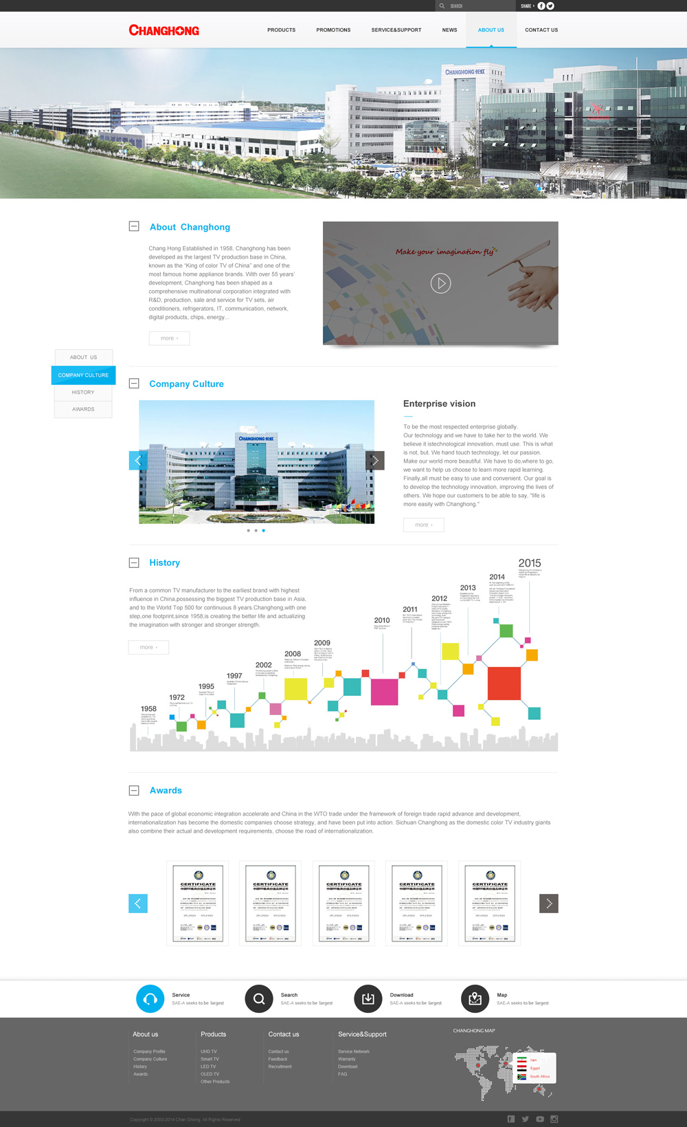 目前,長虹正秉持“員工滿意、顧客滿意、股東滿意”的核心價值理念,恪守“責任、堅韌、創(chuàng)新”的企業(yè)精神,憑借品牌、技術(shù)、產(chǎn)業(yè)、人才、市場、服務等強大實力,全力推進制造業(yè)升級、服務業(yè)轉(zhuǎn)型和全球化發(fā)展,逐步將長虹建設成為全球值得尊重的企業(yè)。