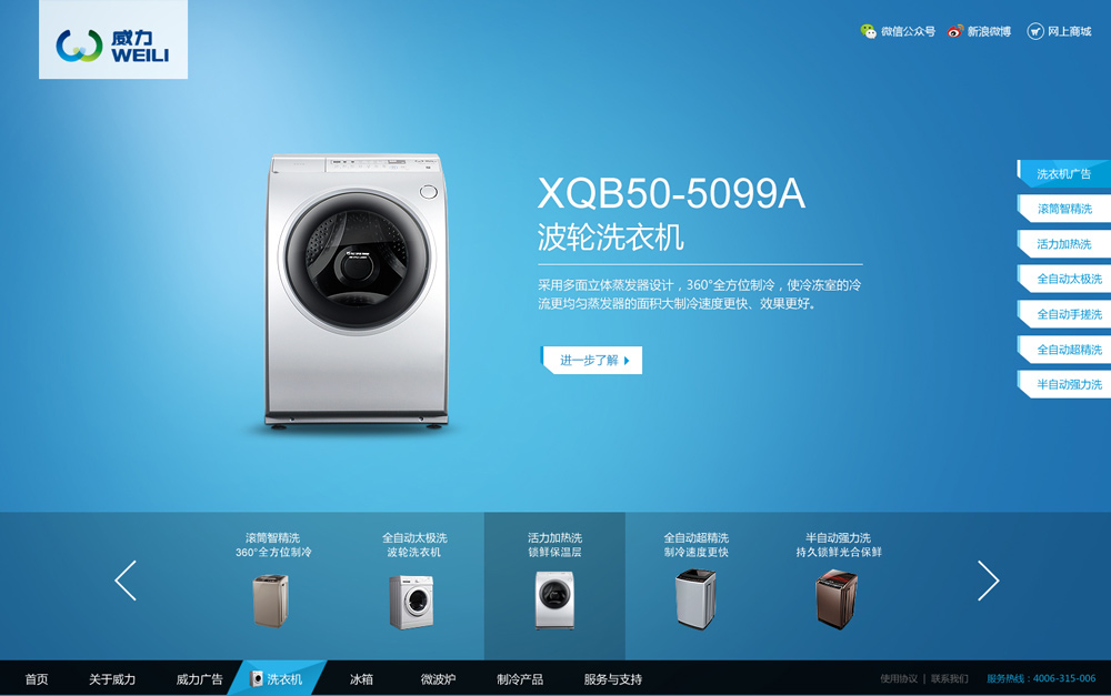 品牌的成長,不僅來源于廣大消費(fèi)者的支持與喜愛,也來源于威力切實(shí)為消費(fèi)者提供品質(zhì)卓越的產(chǎn)品及服務(wù)的理念?;谶@一理念,威力在產(chǎn)品外觀、性能、品牌風(fēng)格等方面注入“科技、時(shí)尚、環(huán)保、創(chuàng)新、合作、共贏”的全新內(nèi)涵,以“團(tuán)結(jié)、拼搏、開拓、創(chuàng)新”的威力精神,實(shí)現(xiàn)威力“國內(nèi)領(lǐng)先、全球知名”的愿景。