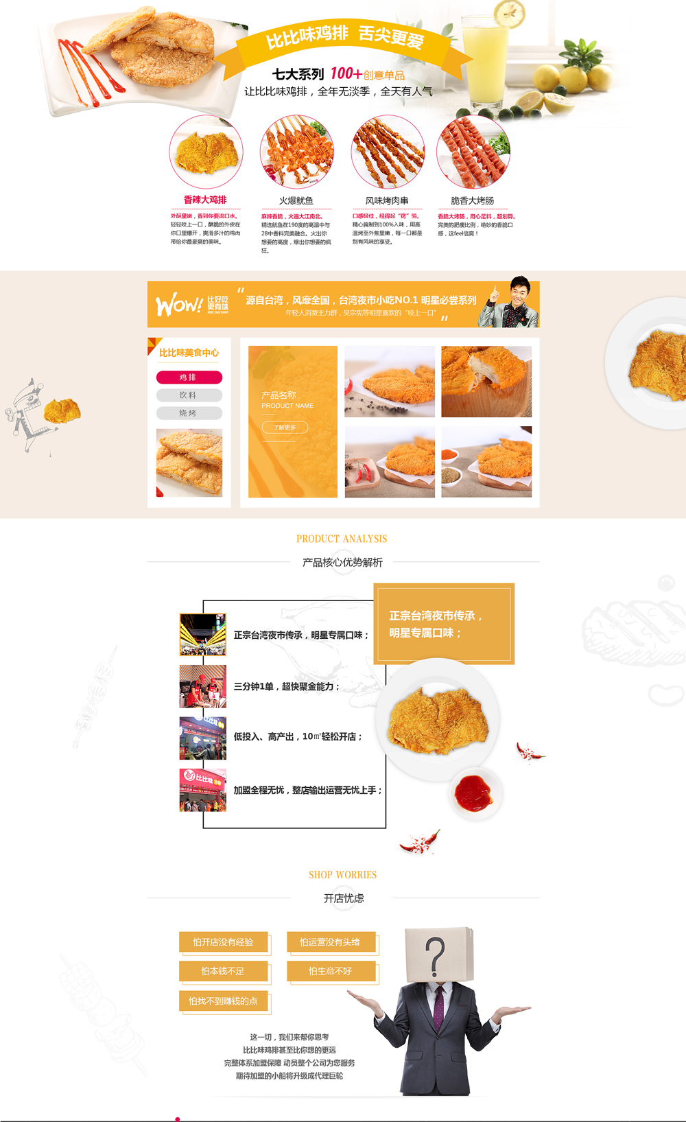 2015年,公司啟動(dòng)了以臺(tái)灣正宗夜市口味top1的比比味雞排,依托精準(zhǔn)的高頻年輕受眾定位,完善的出品研發(fā),快捷倉儲(chǔ)配送體系,迅速在全國范圍內(nèi)掀起一股餐飲熱潮,目前已開了300多家門店.