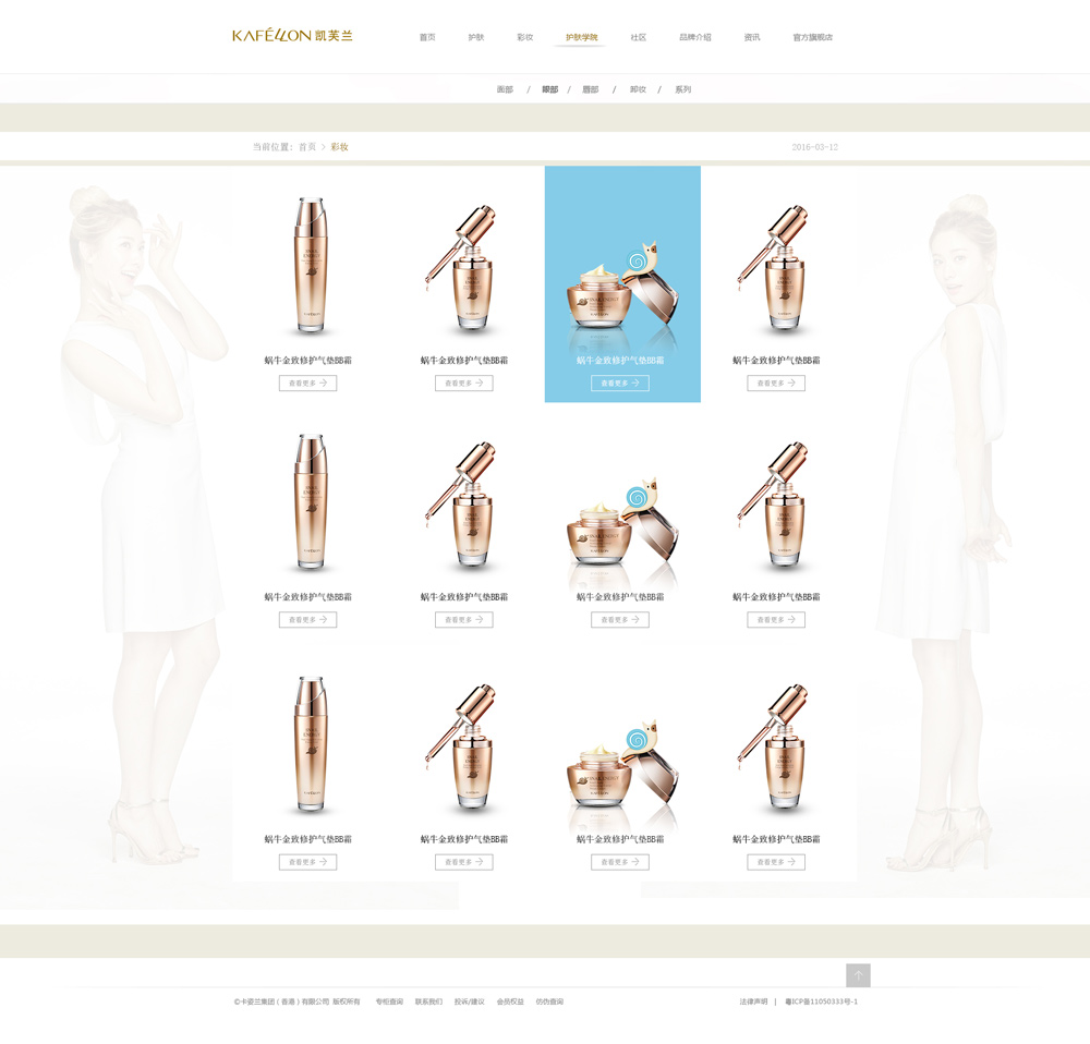 凱芙蘭是引領(lǐng)彩妝產(chǎn)業(yè)發(fā)展的革新性品牌。自巴黎正式問世來,凱芙蘭不斷融匯名師睿智,不懈進(jìn)取,融合夢想與科技、生活與藝術(shù),以超群技藝與持續(xù)創(chuàng)新的傳統(tǒng),當(dāng)仁不讓地成為全球各地年輕一代女性心儀的品牌。凱芙蘭始終注重以法國式的風(fēng)格、品位為準(zhǔn)則,堅持優(yōu)質(zhì)路線,力求通過時尚造型與質(zhì)感內(nèi)涵完美呈現(xiàn)消費(fèi)者的內(nèi)在氣質(zhì)。