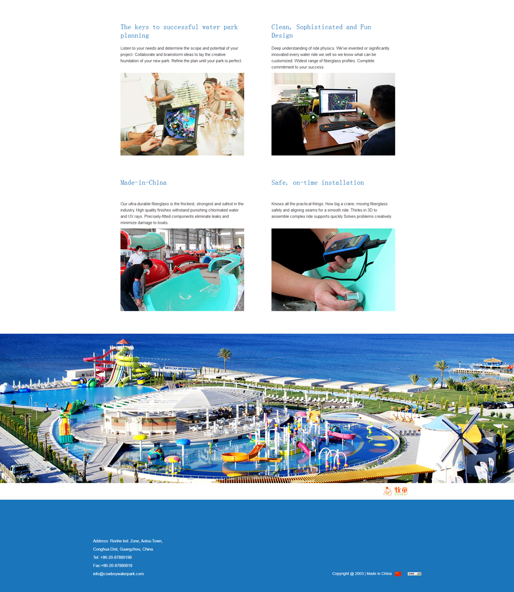 Guangzhou Cowboy Waterpark&Attractions Co.,Ltd is the largest water slide manufacturer in China. Passion-driven, Win-win and Responsible is its enterprise culture. Over 100 people have striven to provide attentive service and quality products from 2014 years.